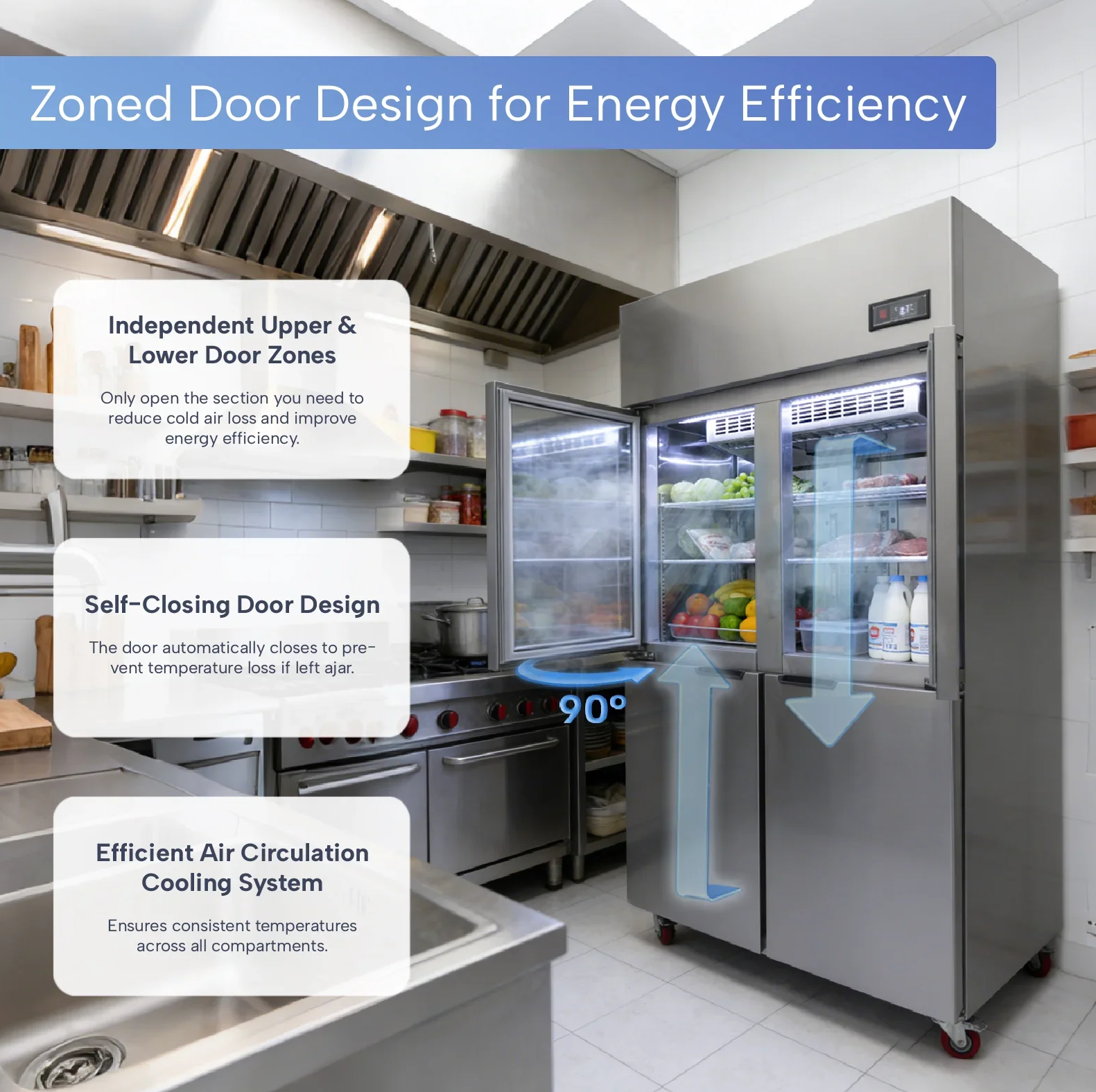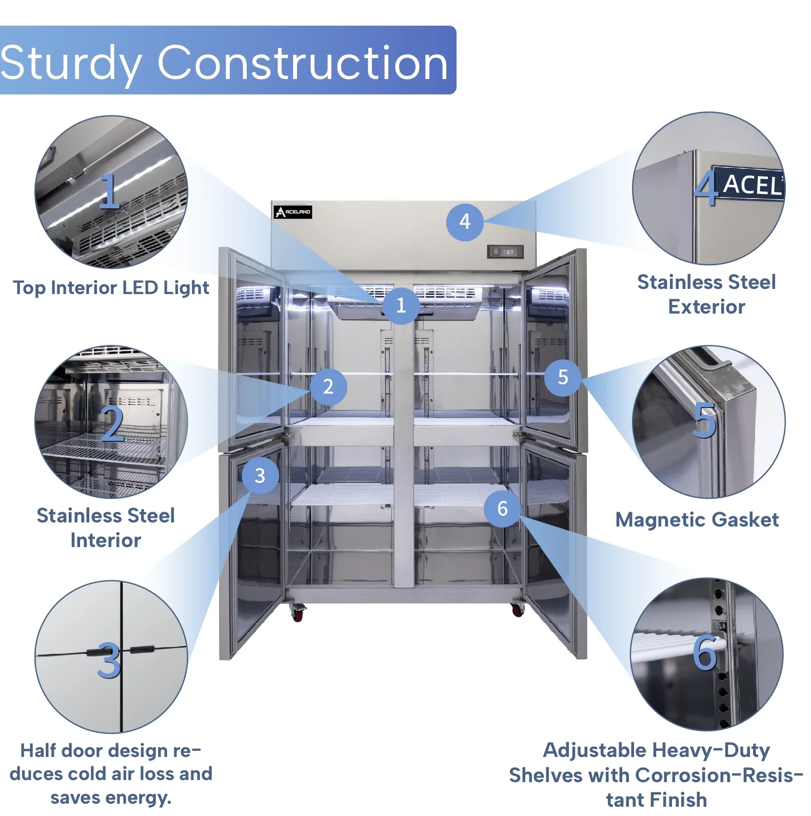 ACELAND 48 Inch Commercial Reach-In Freezer, 4 Split Doors, Stainless Steel Upright Freezer Features: