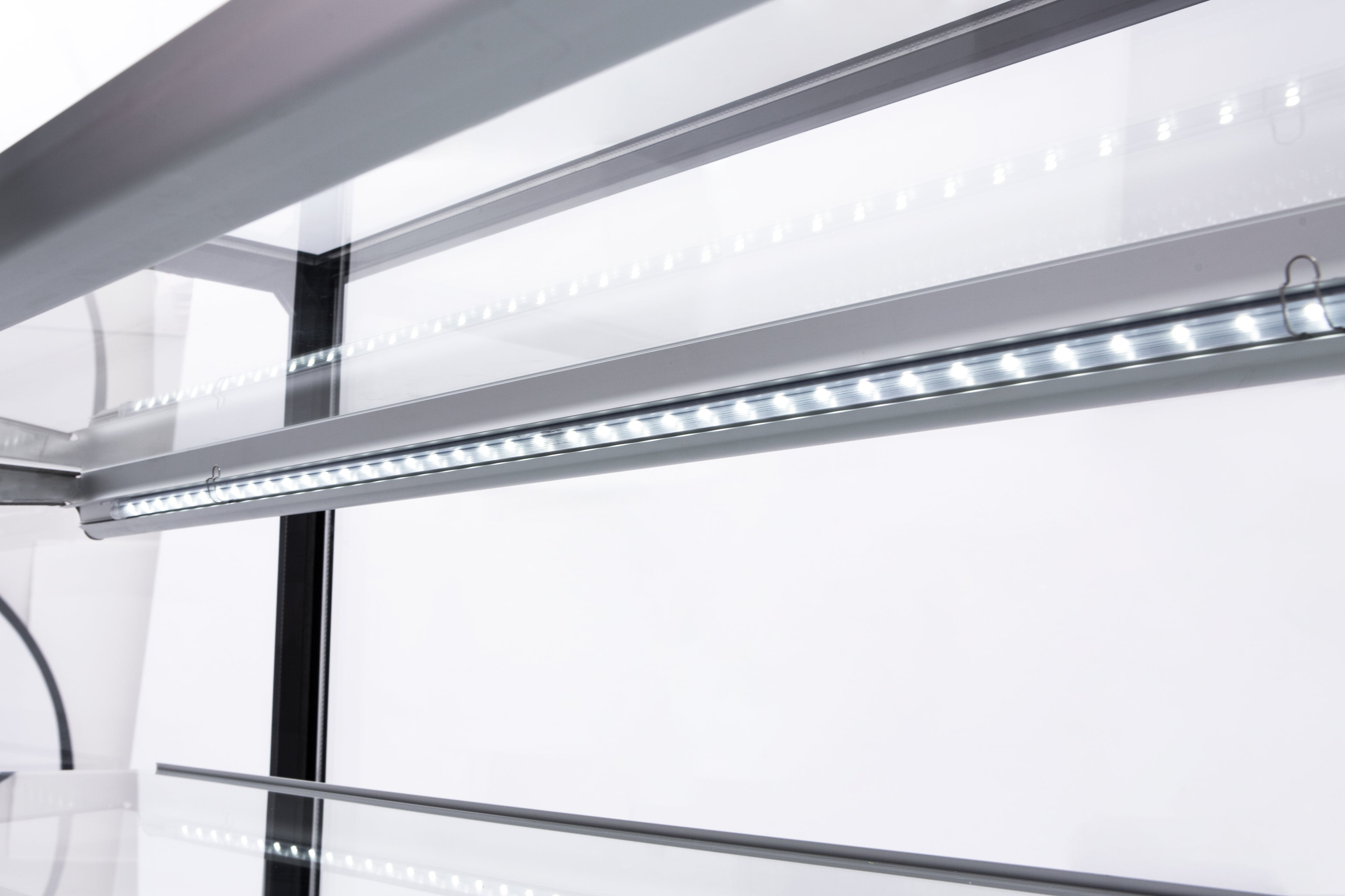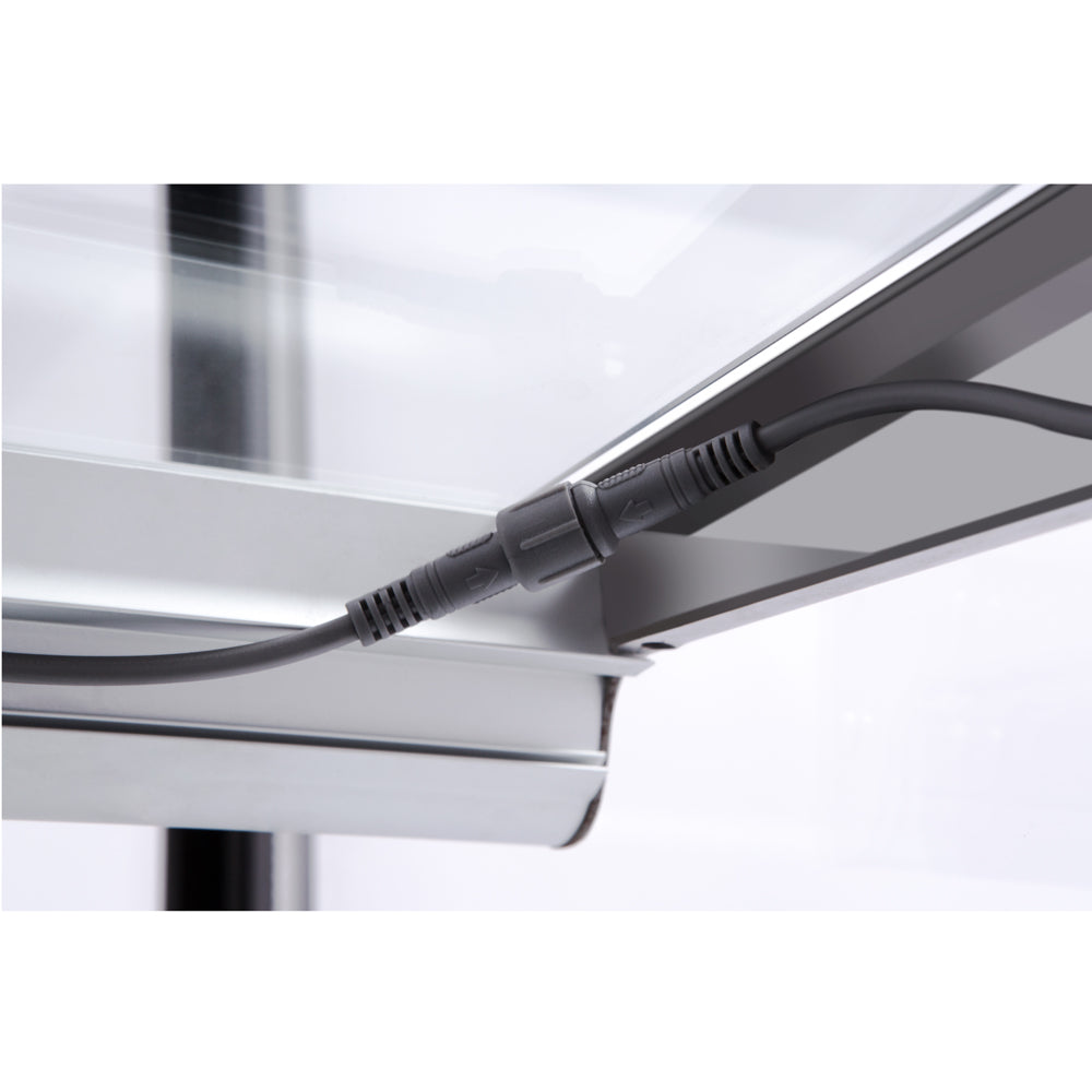 This unit features a 4-sided, double glass design for maximum product visibility, while the rest of the exterior is a sleek, black color to draw attention to the treats on display. Plus, the built-in LED lighting illuminates your product for a bright, enticing display.