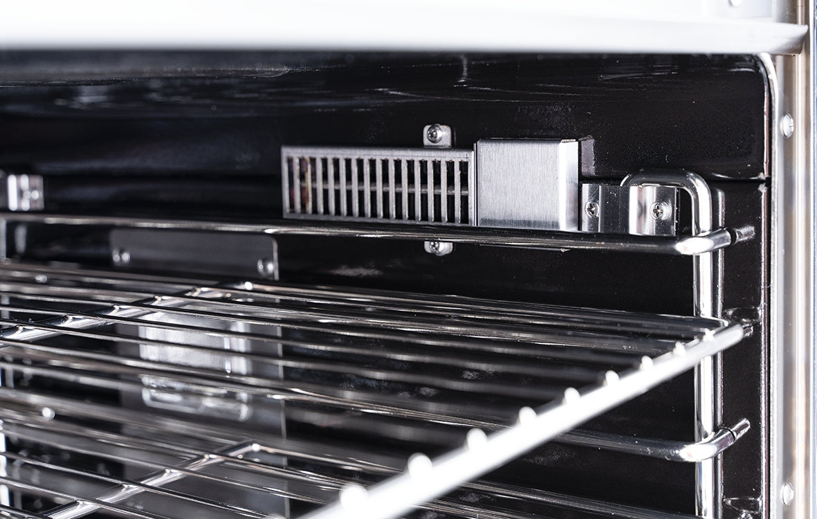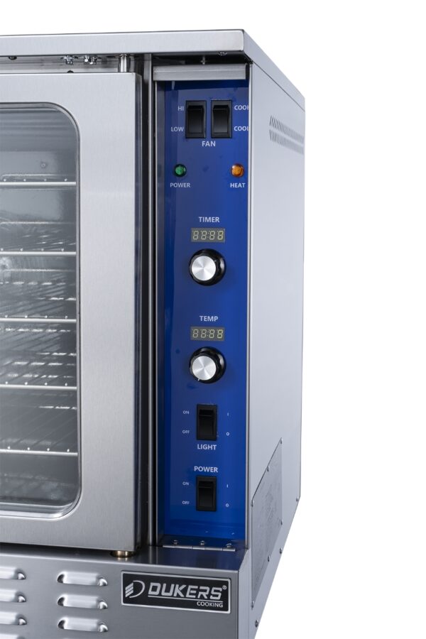 Blow hot oven air over and around the food to cooks evenly and more quickly with the Dukers DCCOG1 Convection over with 3 Burners.