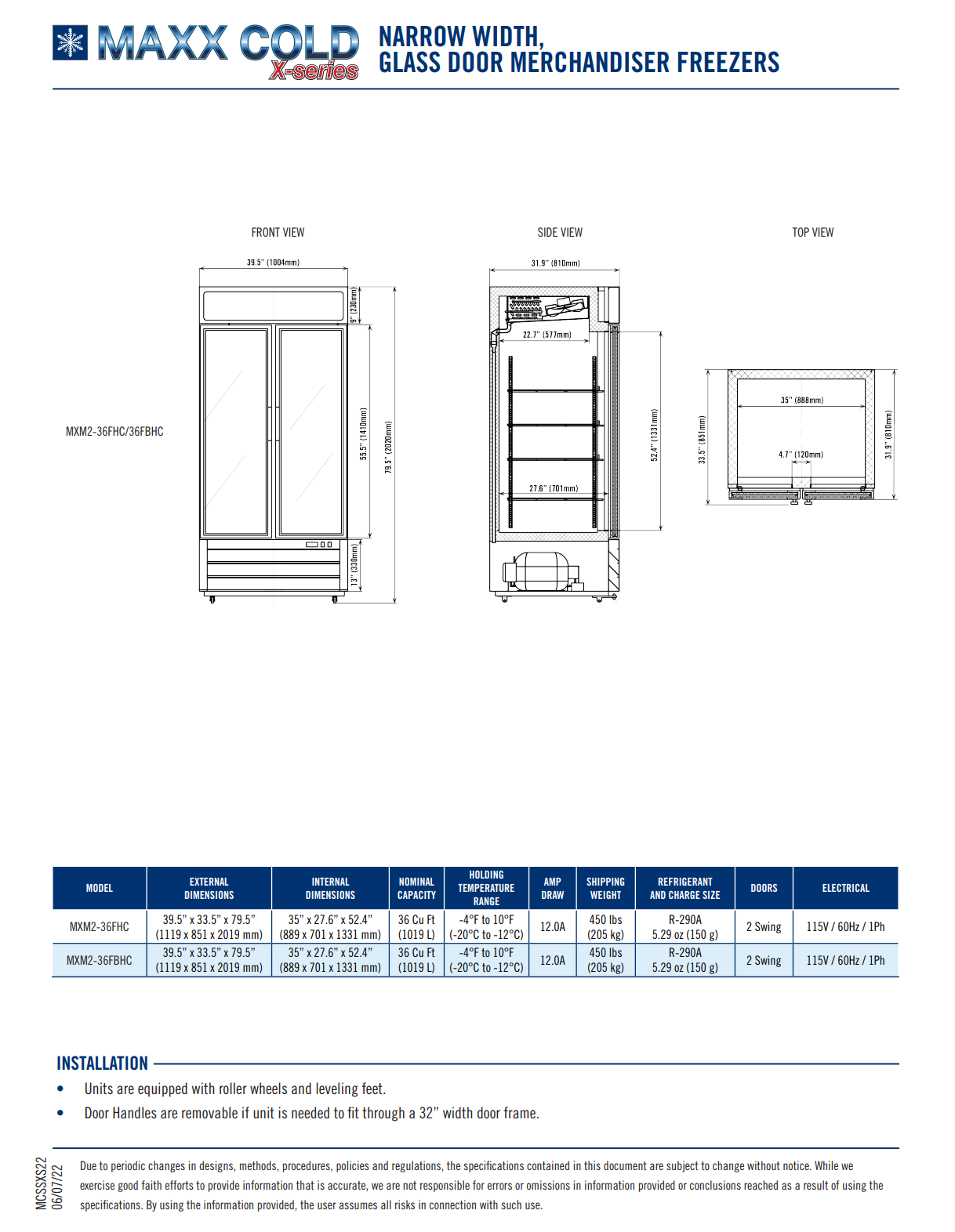Maxx Cold Narrow Width, Double Glass Door Merchandiser Freezers are ideal for compact environments offering an attractive display for last minute purchases or storage depending on the foodservice, beverage and retail application. The upright freezer cabinets are available in two door, self-closing swing doors. Smooth, powdered coated steel exterior is available in either white or black with an illuminated top to personalize your advertising message. Merchandiser Freezer units are supplied with four (4) adjustable shelves per door, lock and key set and interior LED lighting to display merchandiser contents. Electronic thermostat, digital LED temperature display regulate accurate temperature, prolonging and preserving shelf life of products. Not only are controls simple to use, operation is energy efficient with CFC refrigerant and foam insulation.