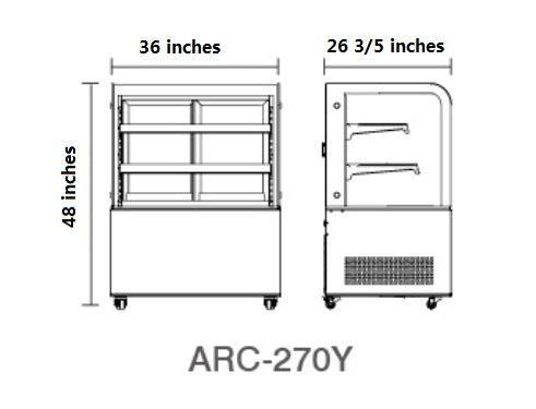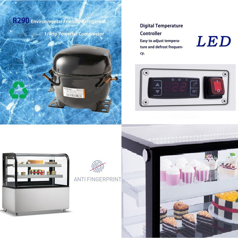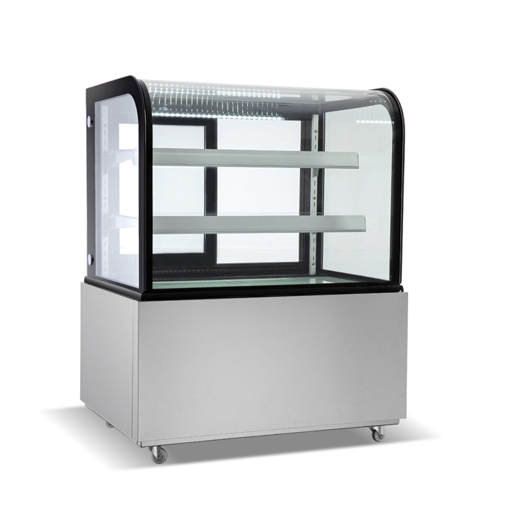 Display your signature cakes, pies, and pastries with ease using this 36" curved glass stainless steel refrigerated bakery display case! With its smooth, square glass design, this contemporary case keeps contents sanitary while providing maximum visibility to entice your customers. Plus, this unit uses eco-friendly R290 refrigerant, making it an environmentally-responsible choice for your business.