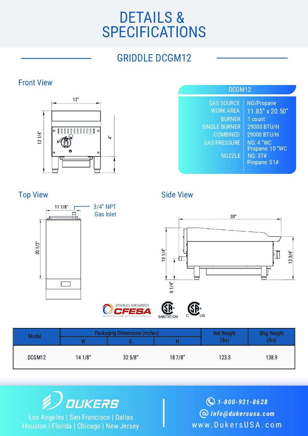 Cook everything from pancakes, sausages and anything in between with the Dukers DCGM12 12 in. W Griddle with 1 Burners.