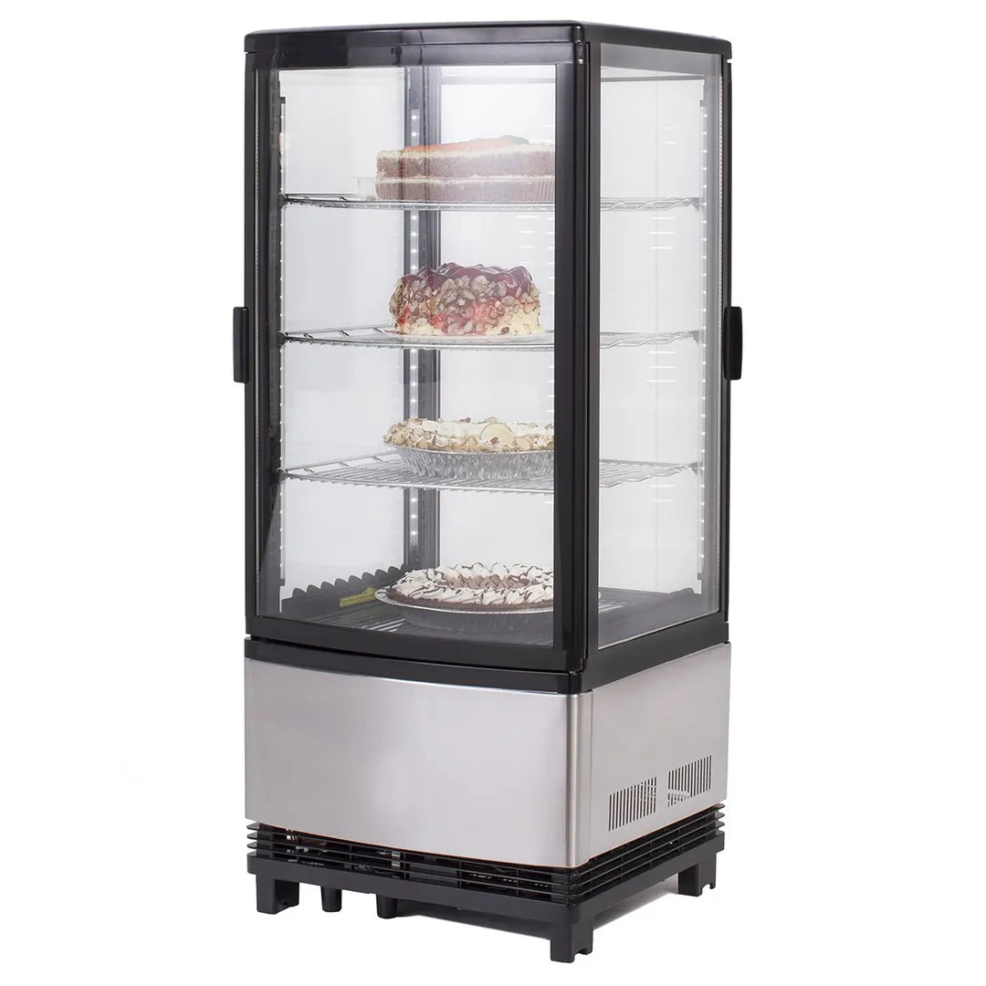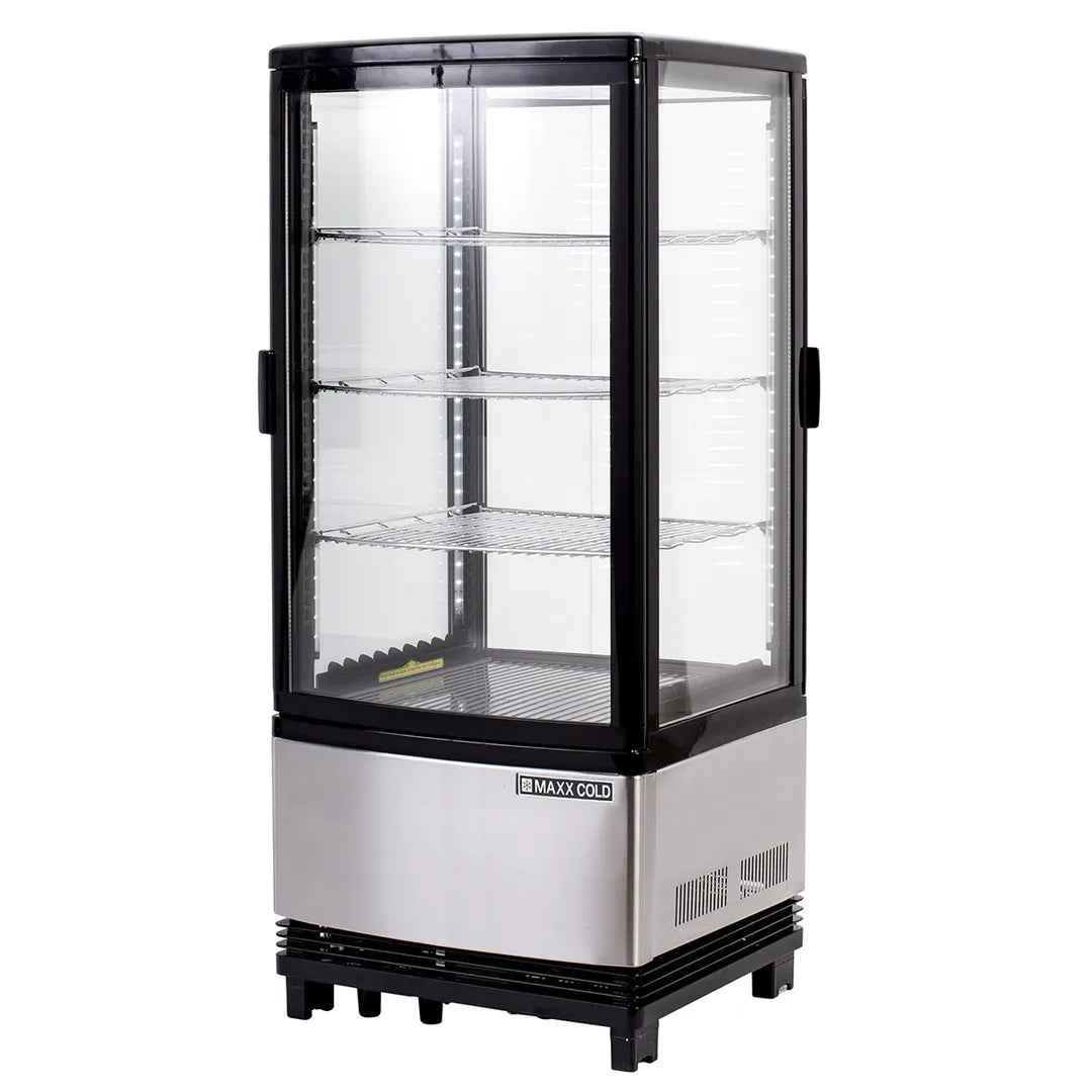 4-Sided countertop clear glass door merchandisers are designed for durability and visual appeal in promoting impulse sales of your product. These glass door merchandisers are energy efficient and effective at keeping product at exactly the right temperature. This keeps food fresh & delicious for longer time periods. The simple-touse but precise digital controls allows for accurate temperature settings and regulation. Unit comes with an internal condensate evaporator so a floor drain connection is not necessary.