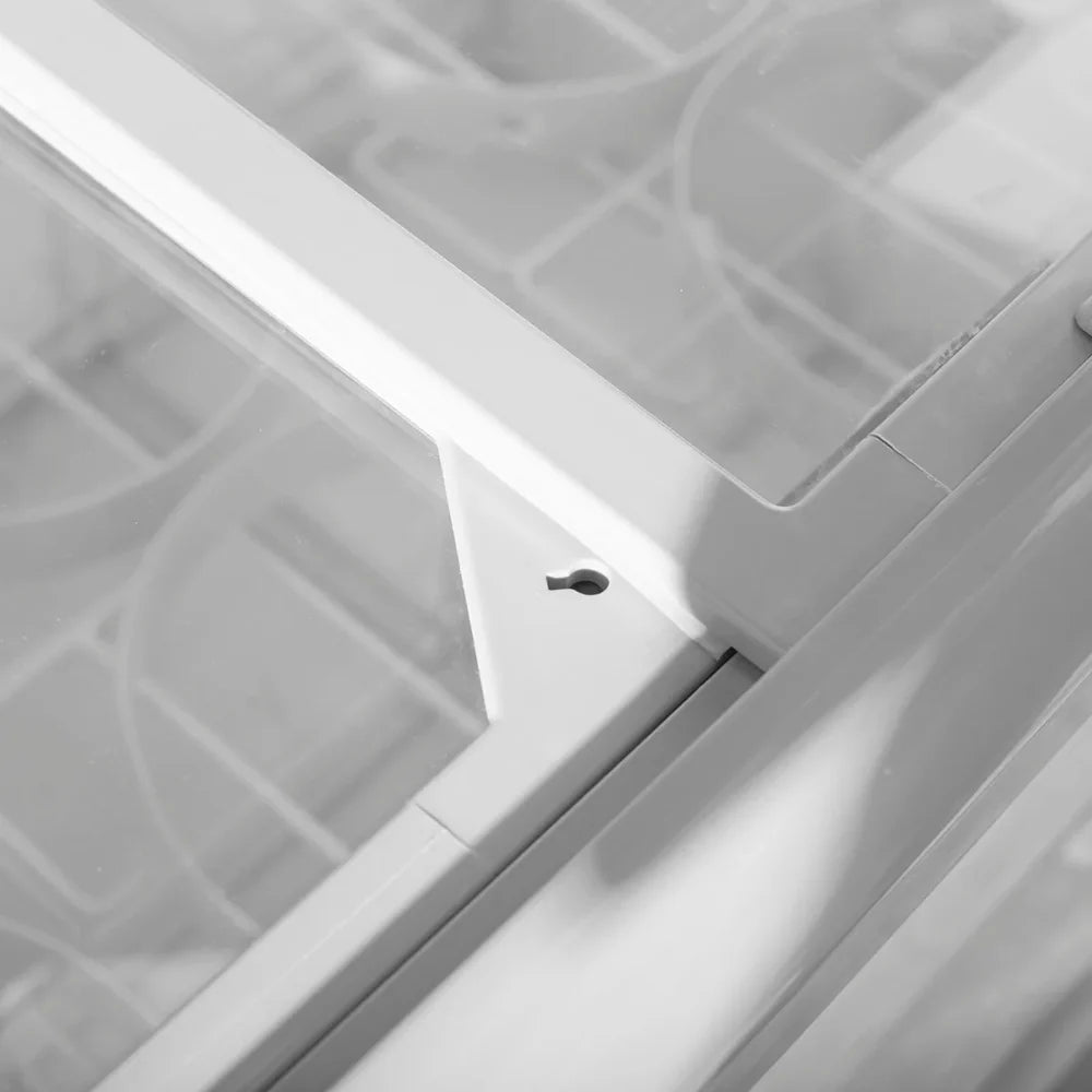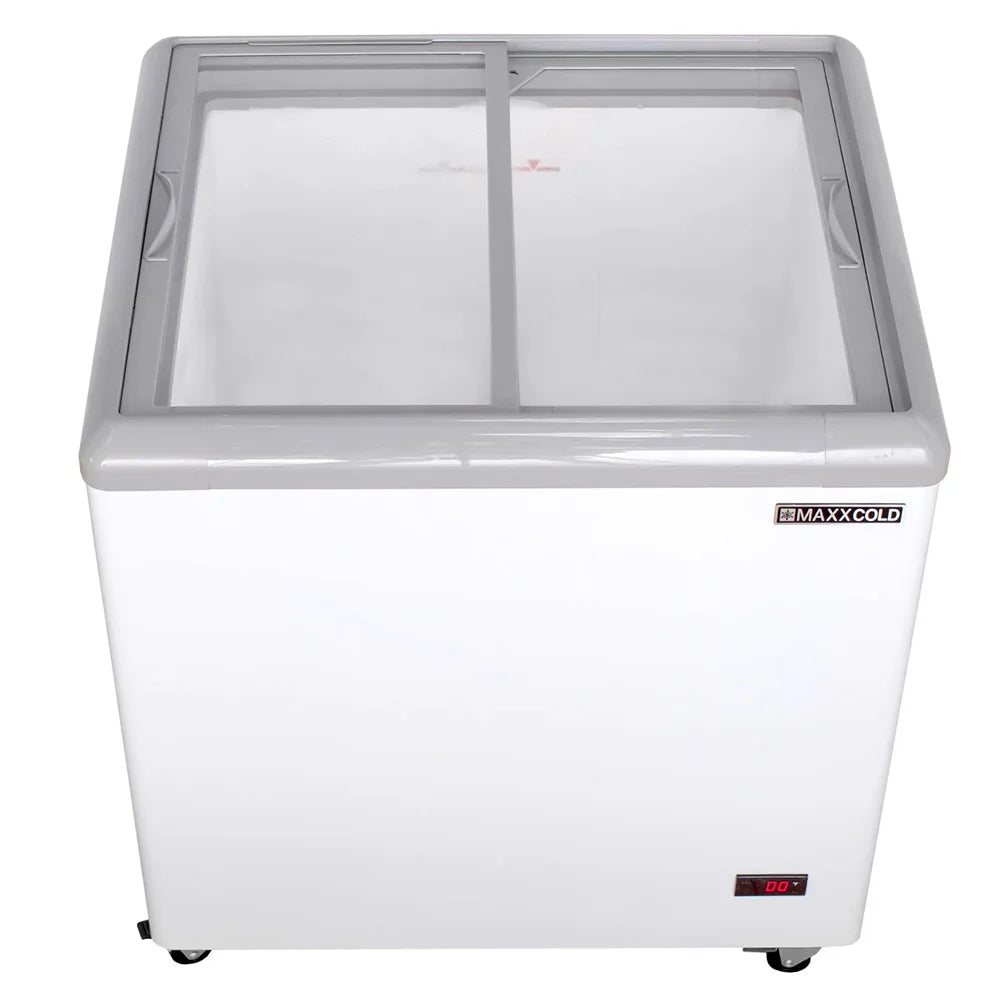 Maxx Cold X-Series Ice Cream Freezer, mobile, 5.8 cu. ft., (2) novelty baskets & (2) dividers, (1) frost scraper, flat sliding glass lids, lid lock & keys, interior LED lights, adjustable temperature, white zinc coated, baked on enamel steel exterior, painted white powder coated steel interior, casters, R290a, 1/3 HP, cETLus, ETL-Sanitation